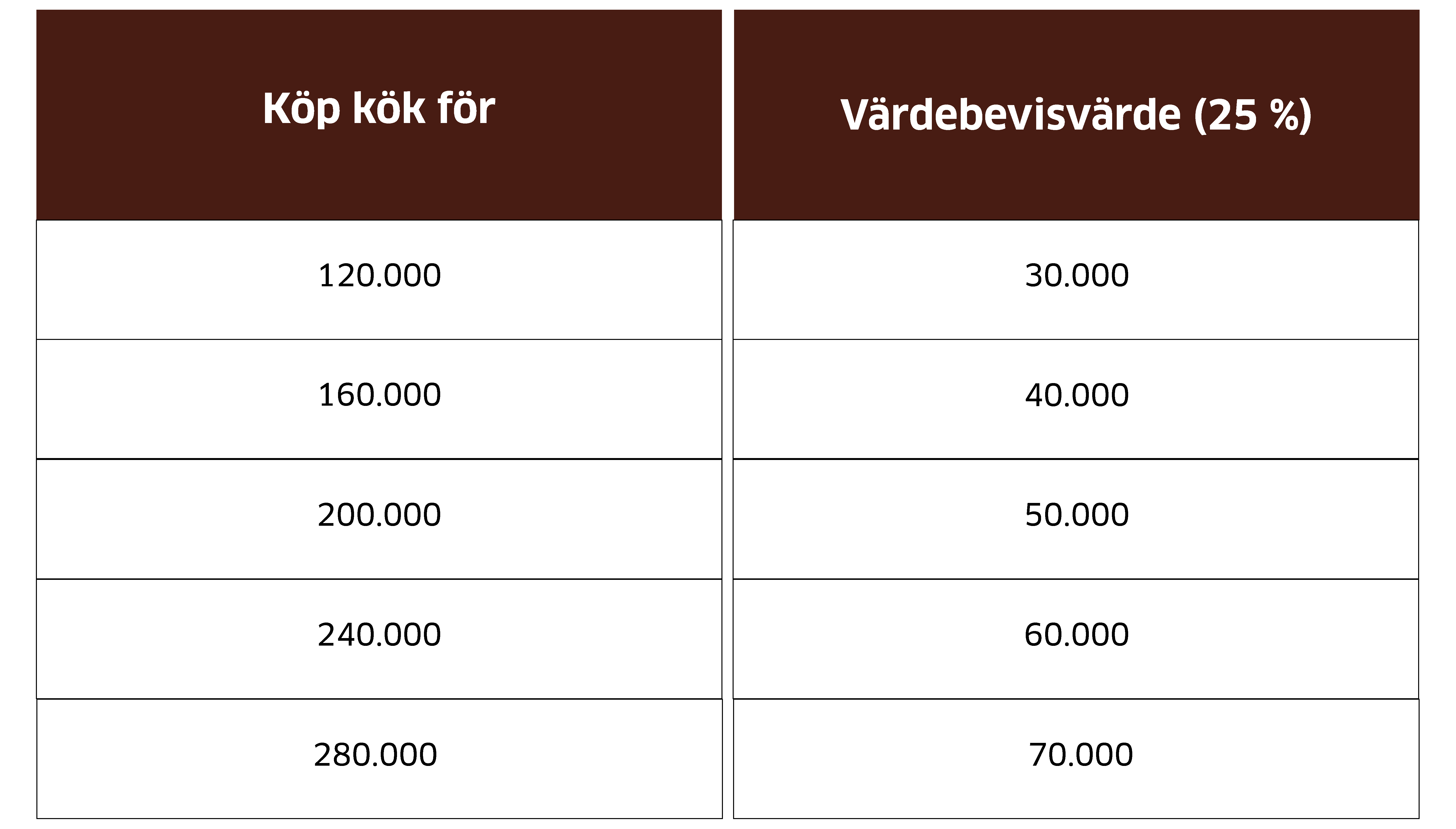 Exempel på köp av kök och värdebevis ses nedan: